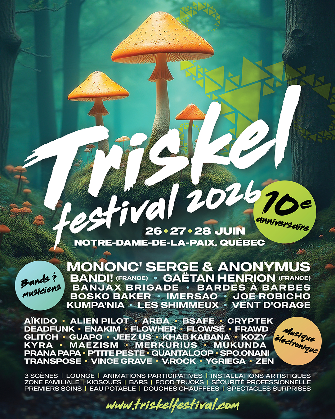 Depuis 10 ans, Triskel célèbre la création sous toutes ses formes. Musique, arts visuels et expériences sensorielles s’entrelacent pour soutenir et faire rayonner les artistes d’ici et d'ailleurs, dans un esprit de liberté, de rencontre et de communauté.